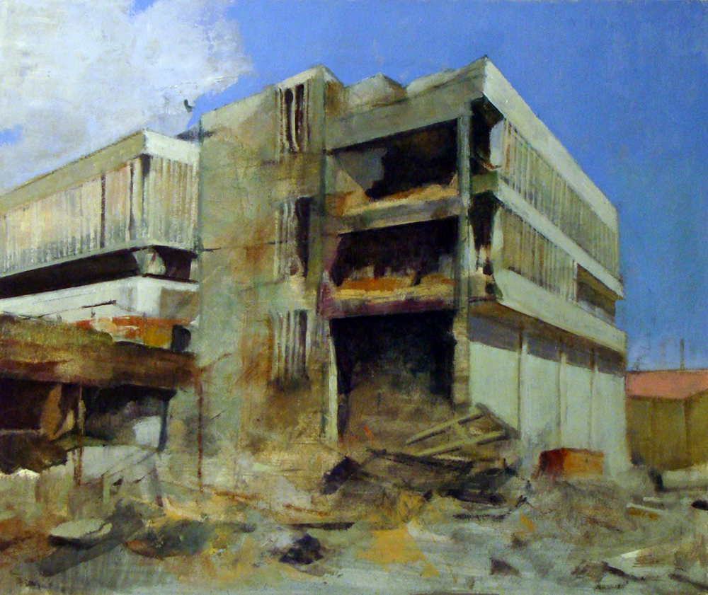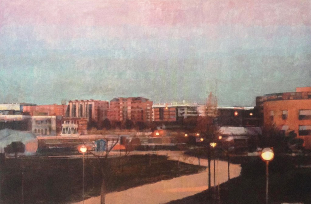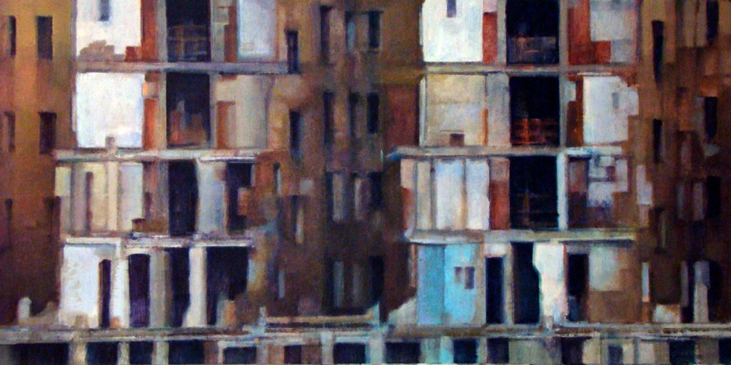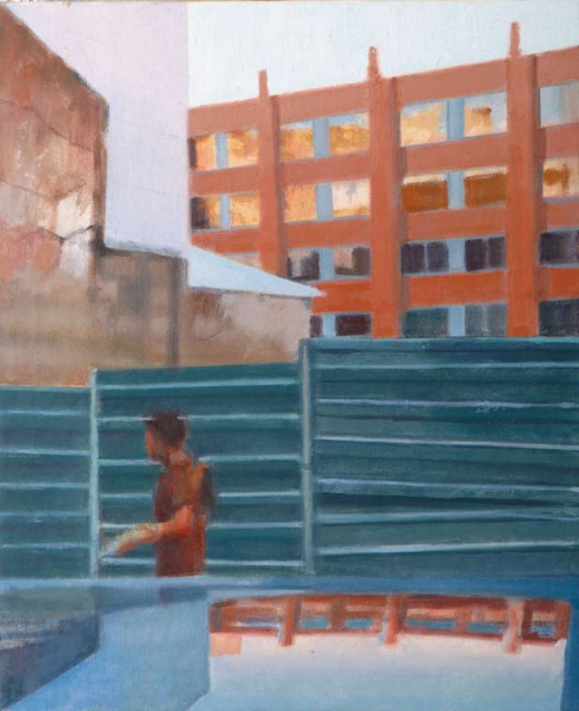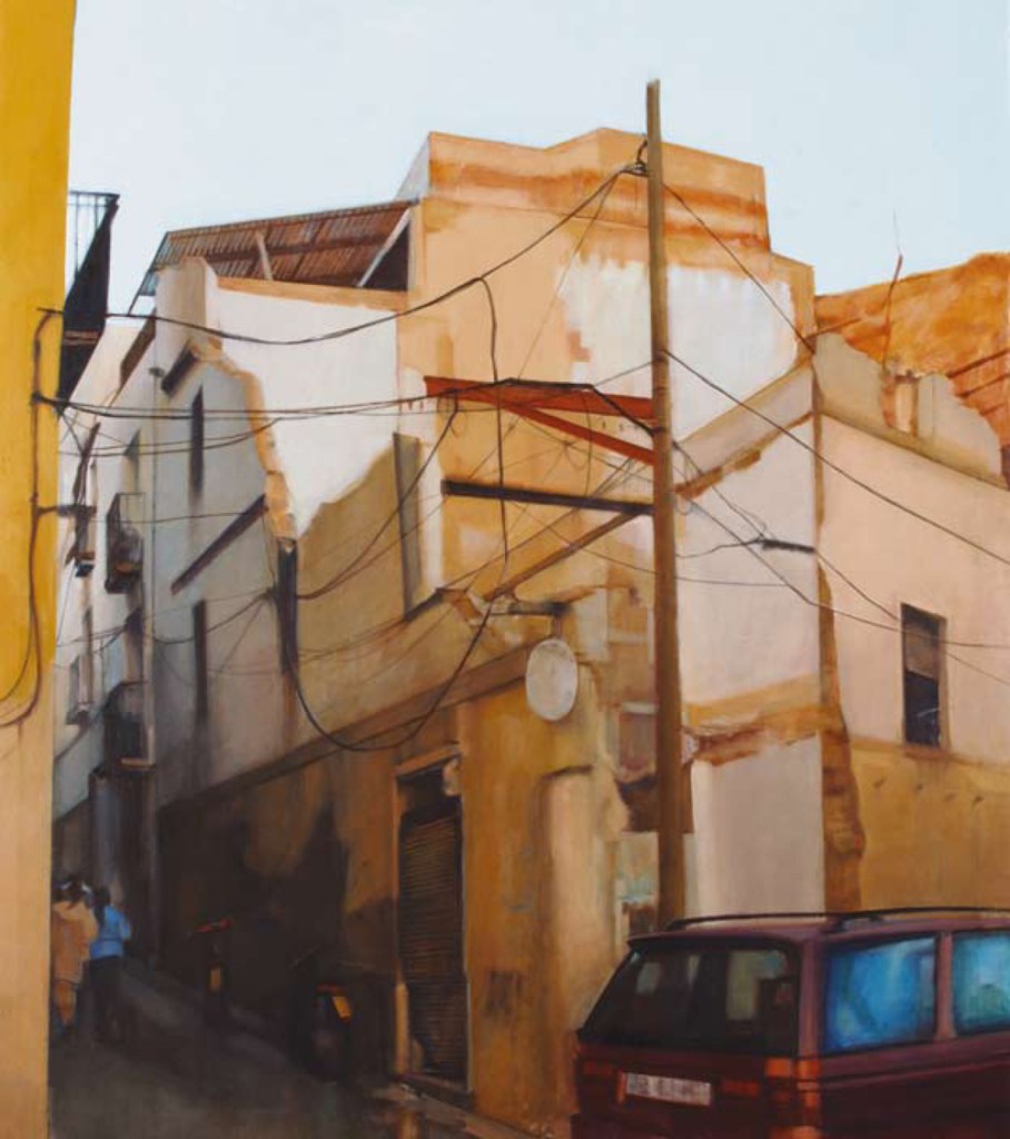 Todo mi afán a lo largo de estos años de pintura , ha sido volcar en mis cuadros los entornos complicados, que por exigencias del “ progreso” y nuestro modo de vida tenemos que transitar. Estos lugares por anodinos y repetidos, pierden su fuerza (no lugares); así mismo, las personas, se desdibujan en ellos ( no personas). Sitios, donde ni el hombre ni los lugares, parecen tener importancia.