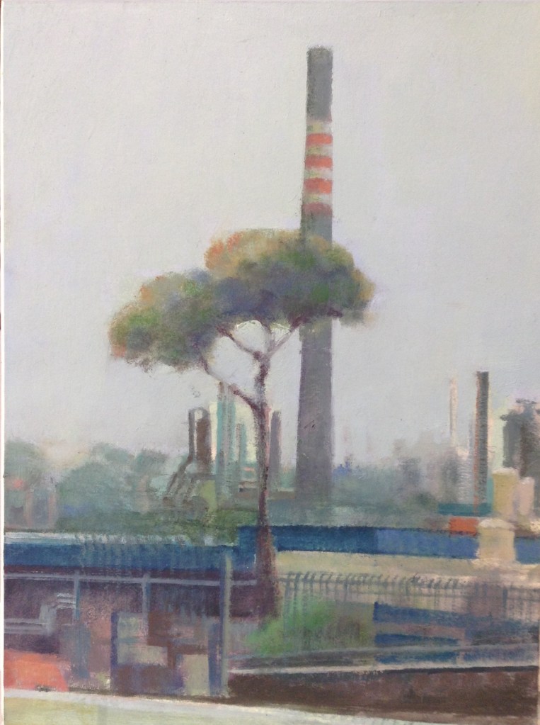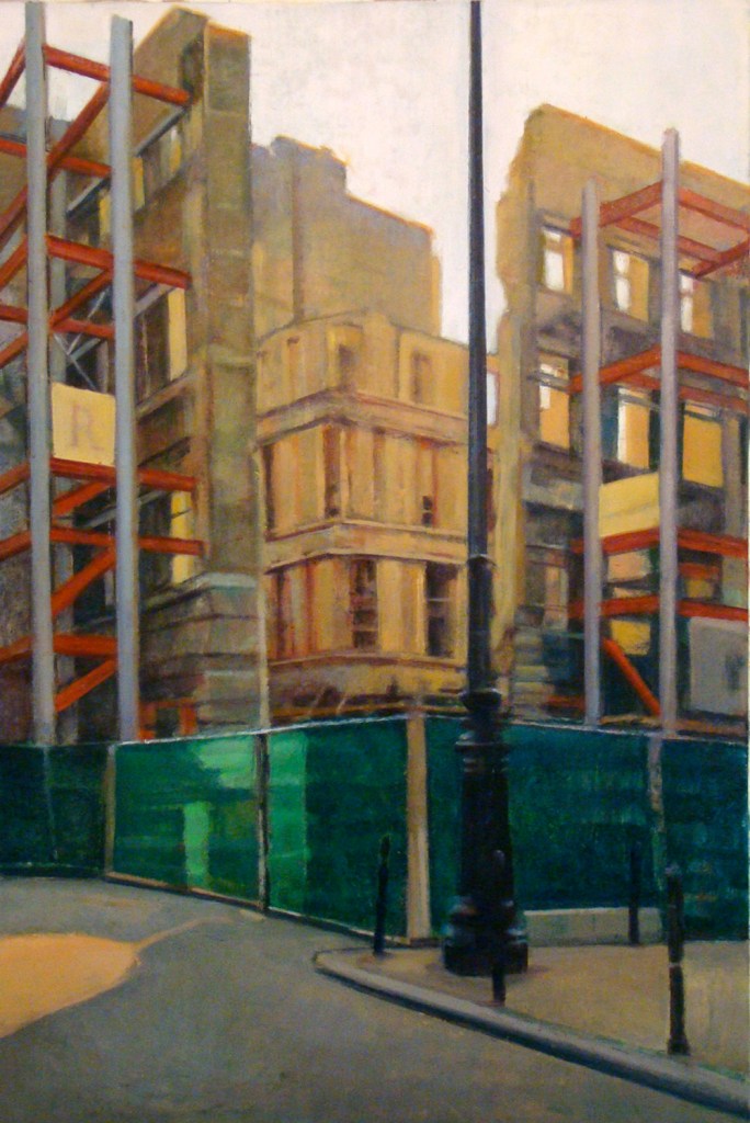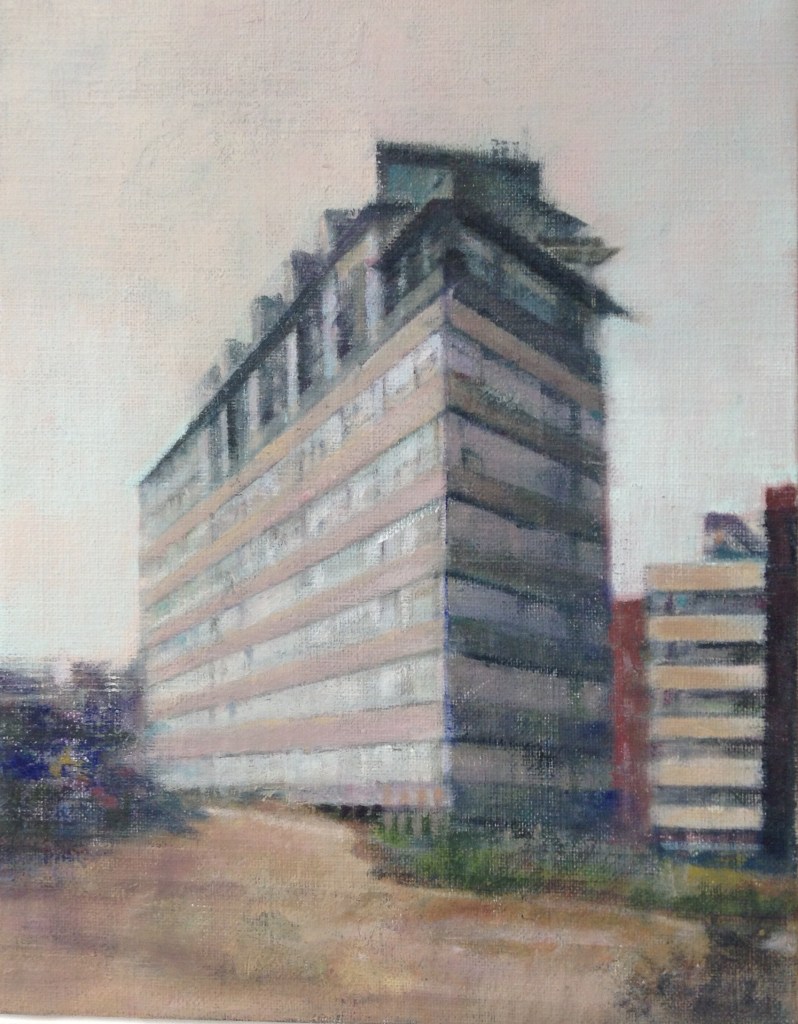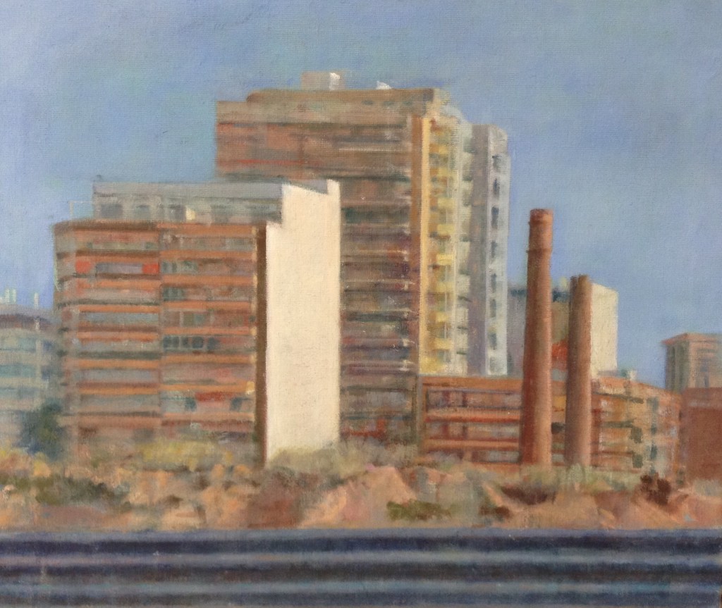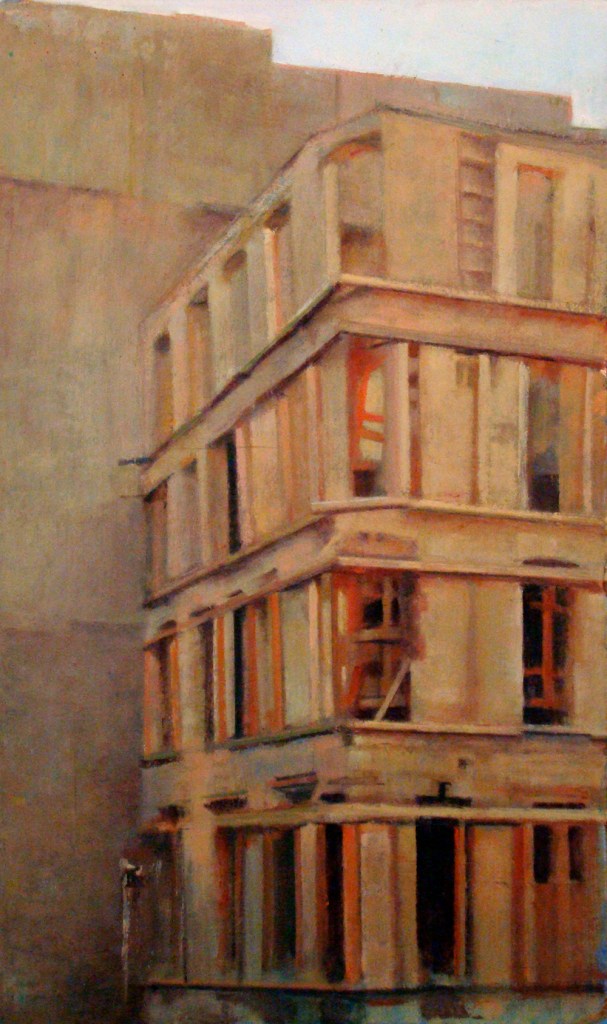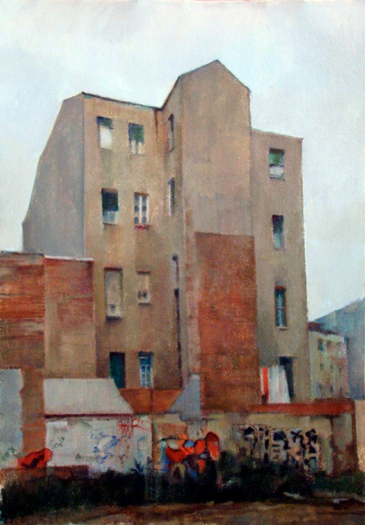 Todo mi afán a lo largo de estos años de pintura , ha sido volcar en mis cuadros los entornos complicados, que por exigencias del “ progreso” y nuestro modo de vida tenemos que transitar. Estos lugares por anodinos y repetidos, pierden su fuerza (no lugares); así mismo, las personas, se desdibujan en ellos ( no personas). Sitios, donde ni el hombre ni los lugares, parecen tener importancia.